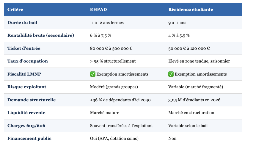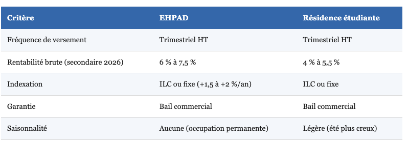 En 2026, la diversification entre EHPAD et résidence étudiante apparaît comme une stratégie patrimoniale particulièrement pertinente :