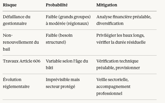 - Analysez la solidité financière du gestionnaire (au-delà des grands groupes, certains acteurs régionaux offrent d'excellentes opportunités)