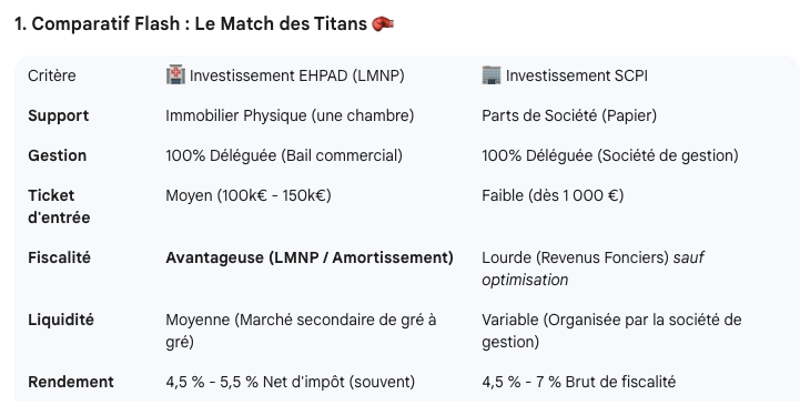 - Résultat : En possédant les deux, vous avez la sécurité du bail commercial EHPAD ET la mutualisation massive de la SCPI.
